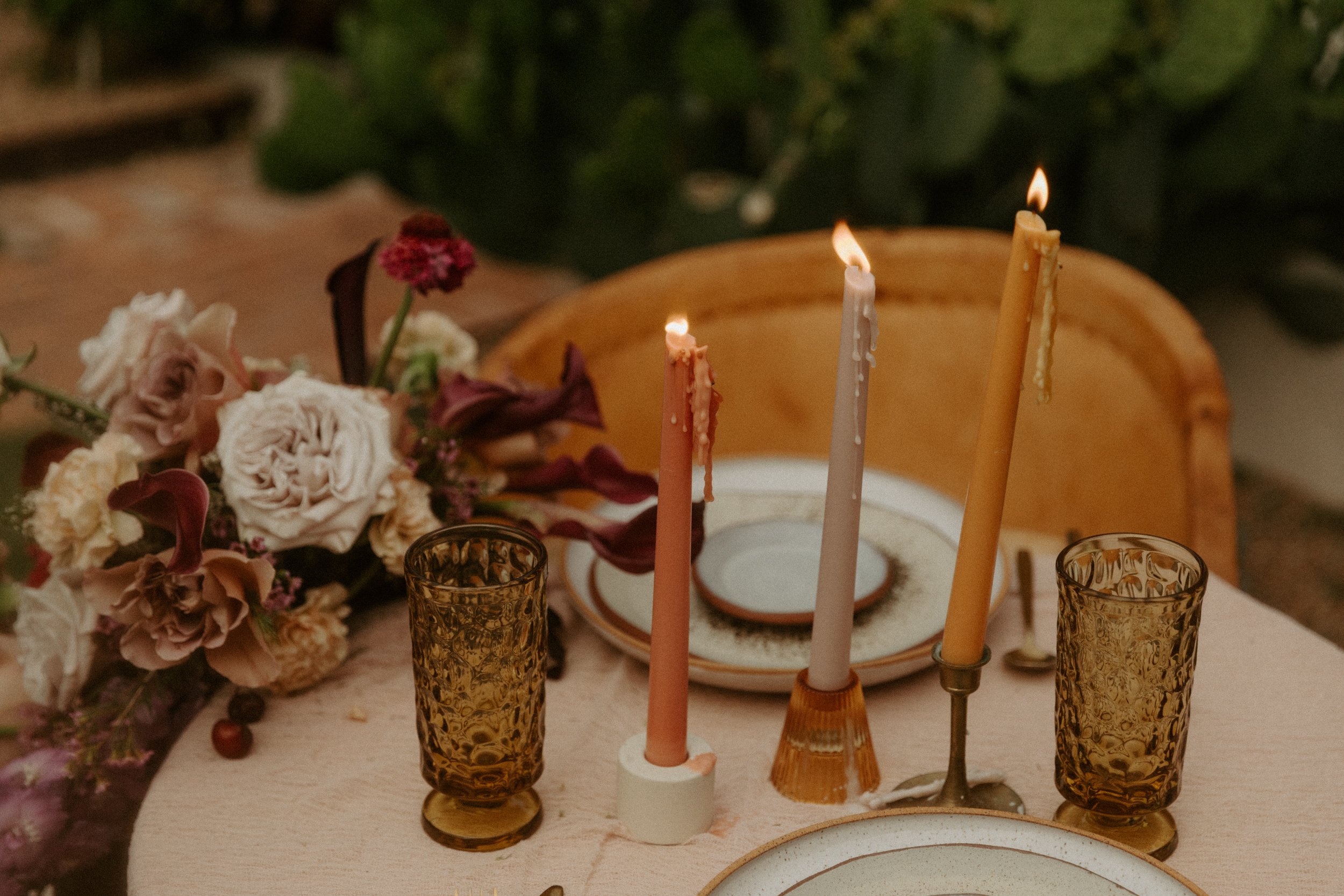For any wedding over 10 people, the Desert Compass uses their 2400 sq. ft garden area with twinkle lights for the ceremony and reception space! Surrounded by all of the beautiful adobe buildings and lush garden areas, this is such a gorgeous space that you can truly make your own. The Desert Compass does allow outside vendors to you can truly customize your day to be exactly how you imagine!