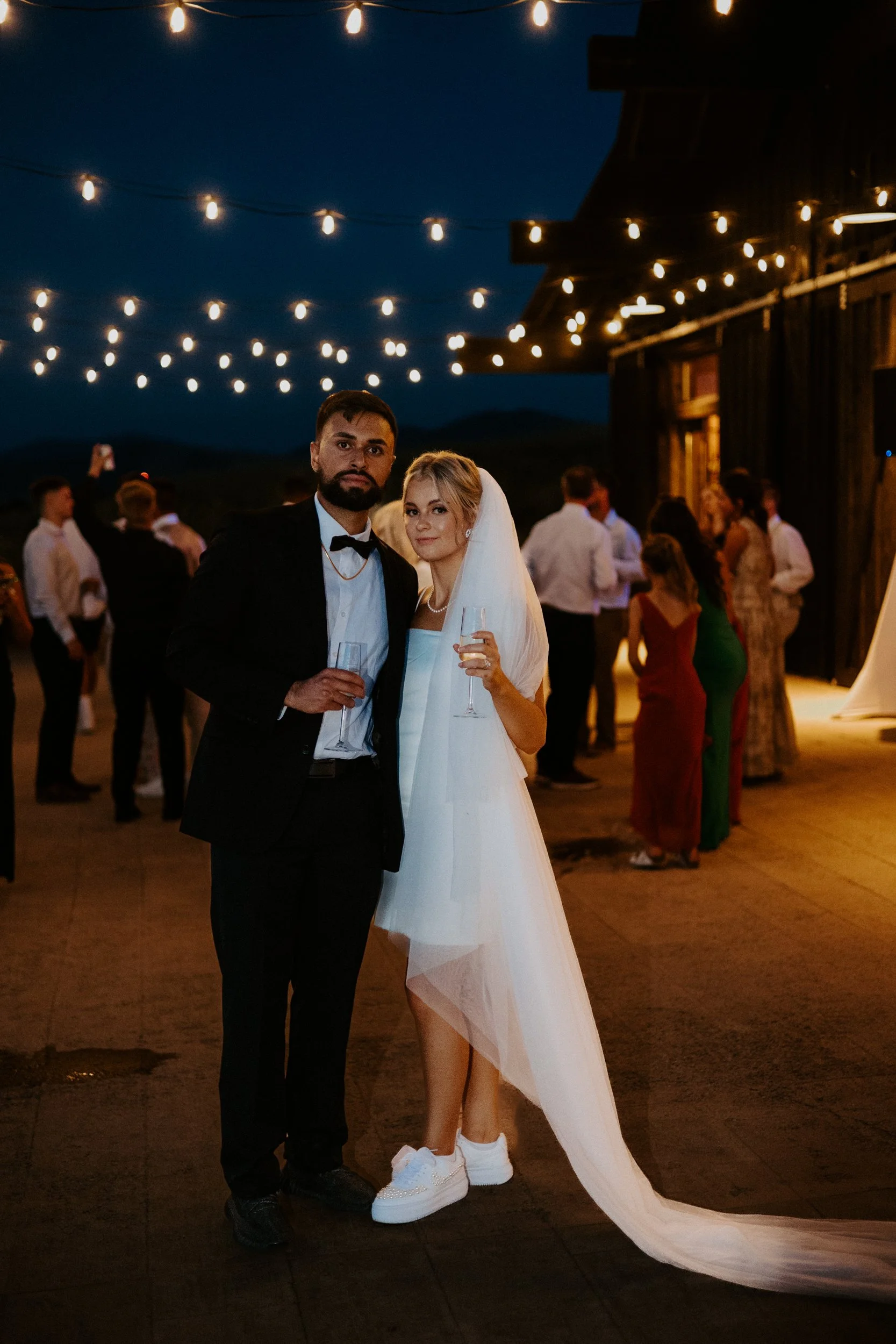 Hannah and Jora's reception took place at The Barn on Mullan, where they celebrated with family and friends. The reception featured a fun patio dance party that overlooked the golf course, giving guests plenty of space to mingle and enjoy the view. For dinner, they served a delicious buffet-style meal, catered by The Barn on Mullan, and capped the evening with desserts from Cakes in the Zoo. The laid-back atmosphere made it easy for everyone to relax and party, with plenty of food, drinks, and dancing under the open sky.
